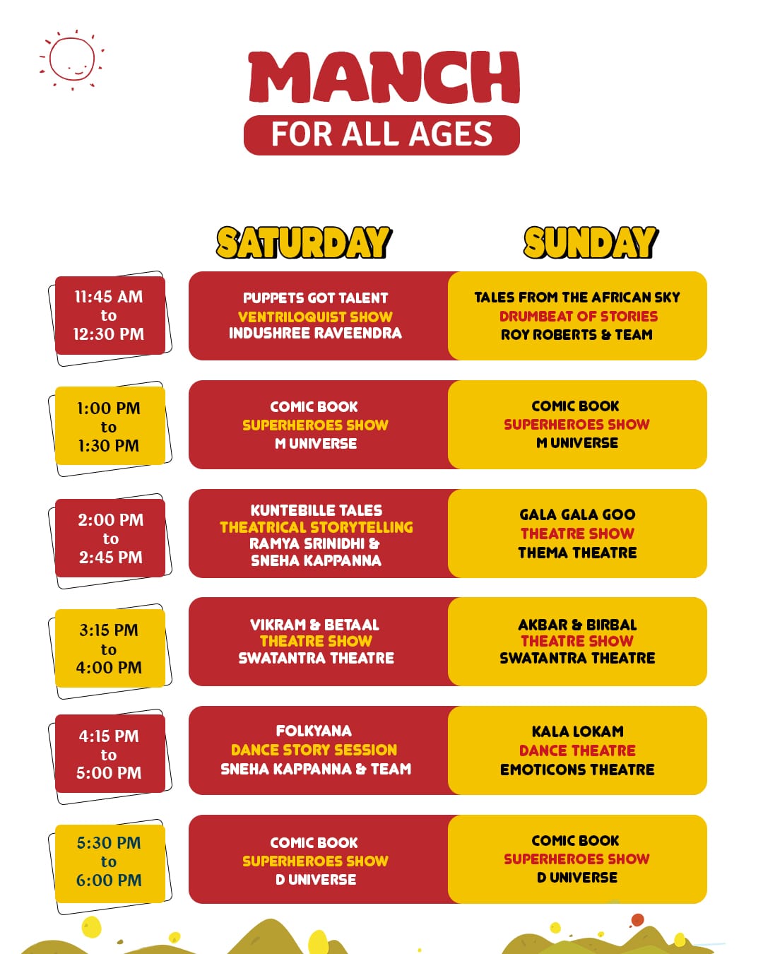 Curated sessions for diverse age groups to introduce the world of drama.