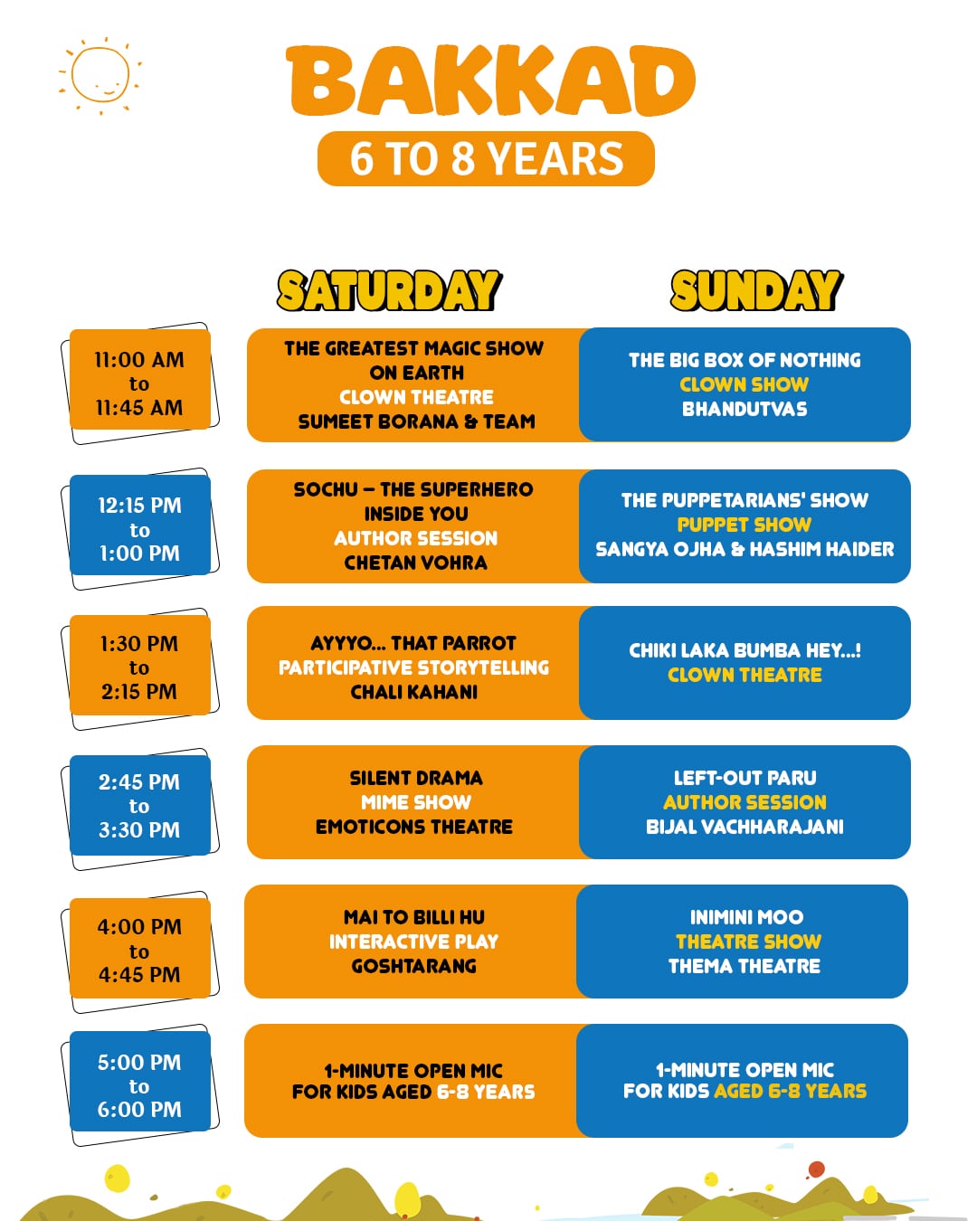 Artists use puppets and voice modulation techniques to entertain the young audience.